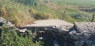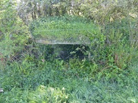 Casemate de tir du type R.676 pour 4,7 cm Pak K.36 (t) équipé d'un périscope. De l'ouvrage, on ne distingue plus guère que le toit mais il semble en bon état général de conservation.