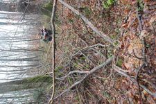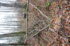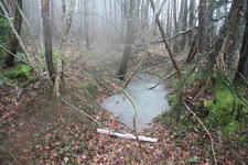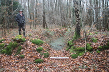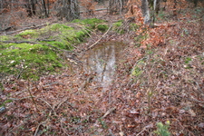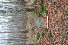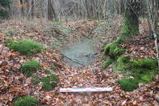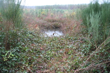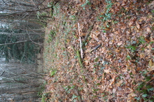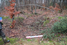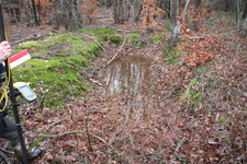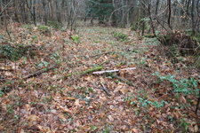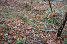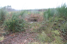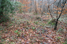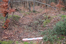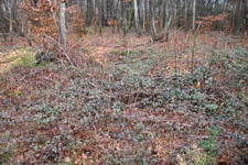 Site de stockage de carburants à proximité de l’aérodrome de Lonrai-Colombiers. Dans un bois. D’après le propriétaire du bois, le stockage de carburant est attesté par les témoignages des riverains et des restes de bidons sont encore présents sur site. Les 13 fosses mesurent de 9 à 10 m de long pour 2 à 2,50 m de large. Les fosses sont plus petites que les habituelles plateformes qui ont servi pour cette fonction et qui mesurent jusqu’à 25 de long. De plus, elles sont encaissées d’au moins 1 m par rapport au terrain naturel et elles sont pour la plupart fermées par un merlon de terre sur 4 côtés laissant juste un passage de 1 m. L’hypothèse de David Capps-Tunwell est que ces fosses seraient des abris de stockage de jerricans manipulés sans la nécessité d’un engin. Le site comportait certainement davantage d’éléments. Sur la partie ouest du site en particulier, les quelques fosses sont difficilement perceptibles dans un bois qui a donné lieu à des travaux de débardage importants.